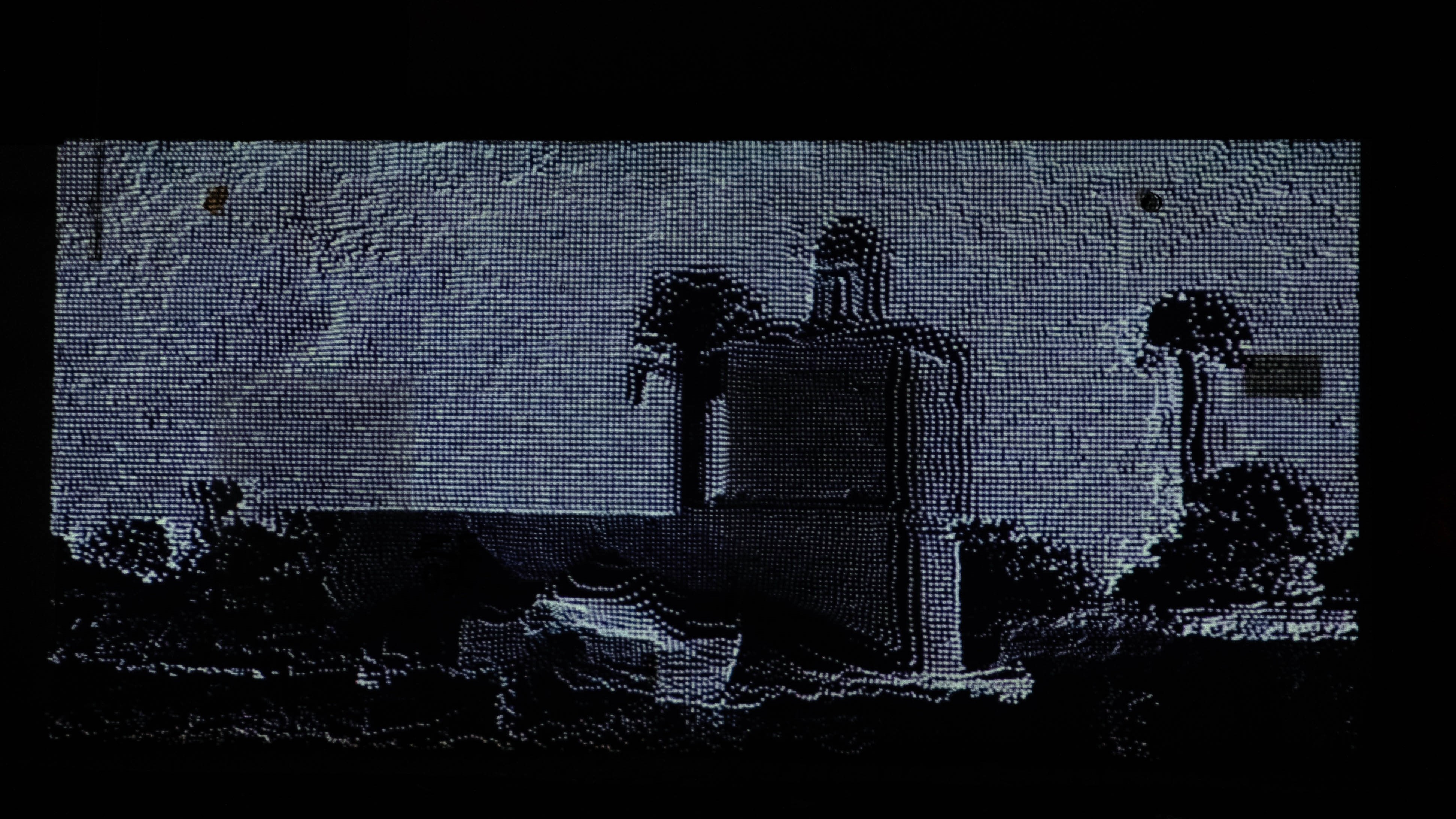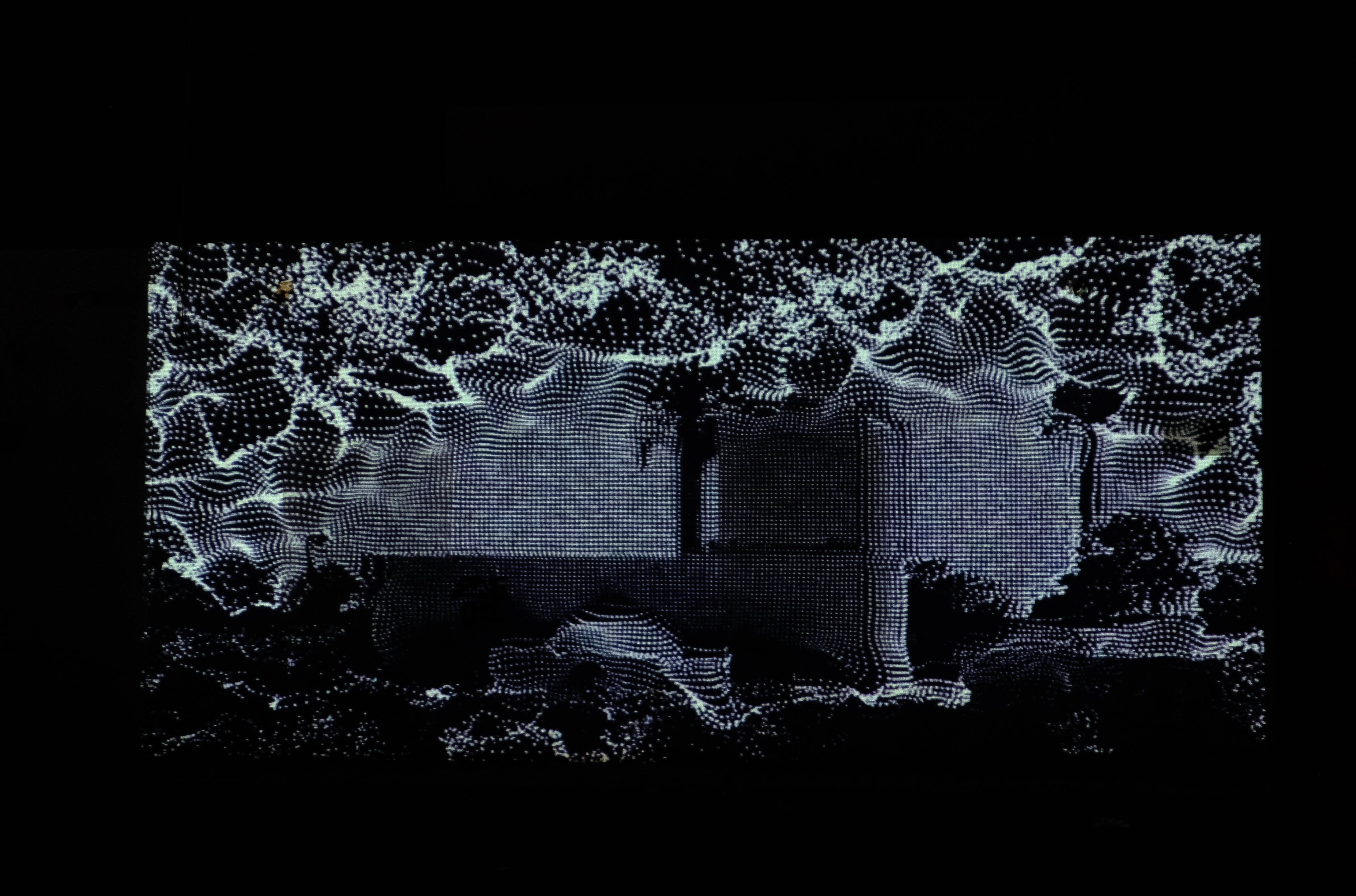 Rather than presenting these images in their original form, the artist broke them down to their smallest elements: the pixel, each no more than a fleeting point of light on a screen. Amplifying this microstructure of digital vision, Liudmila reanimated a selection of images as pixel clouds of white dots.