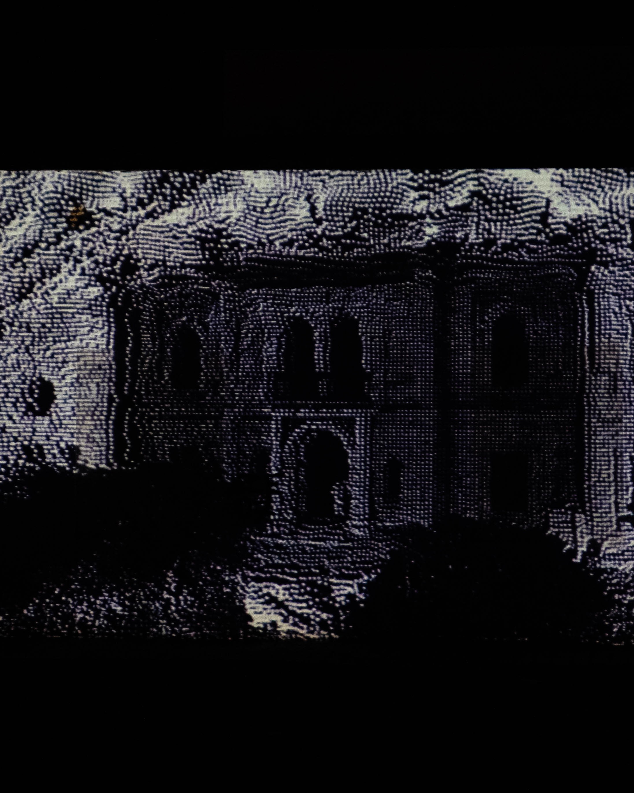 The two projections unfolded in layers of black and white punctuated by subtle hues echoing the architectural colors weathered over decades, tones that shimmered faintly through the projections like memories surfacing. Moments of coherence gave way to dispersal, creating a constant tension between forming and un-forming, between an archive preserved and an archive in perpetual motion.
