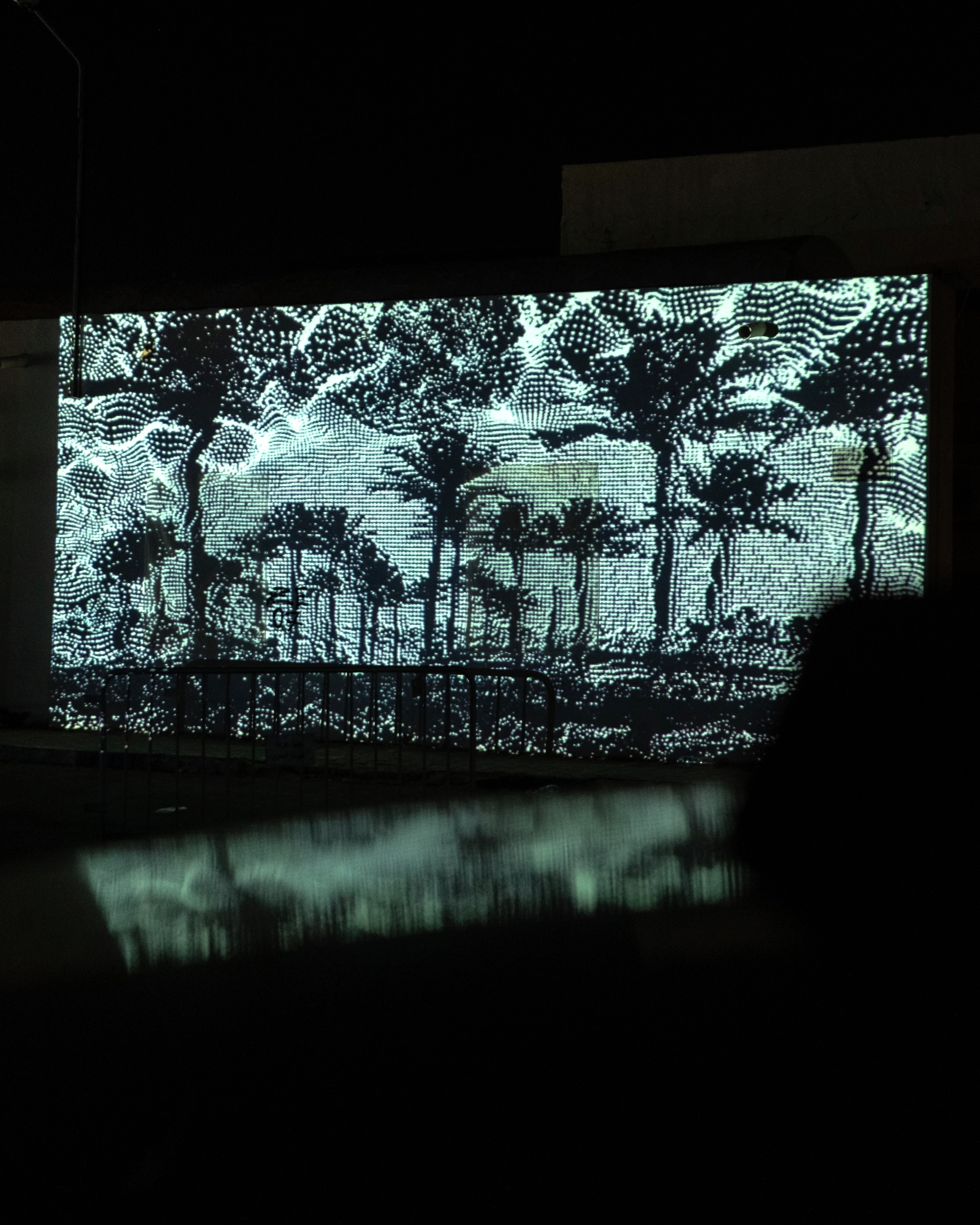The projections shifted in restless contours. Its outlines stretched and contracted, frames seemed to wander, and edges refused closure. This instability gave the images a quality of constant becoming, forms that suggested architectural memories or natural landscapes, only to unravel into openness. Viewers encountered a visual vocabulary without fixed borders, where every frame was provisional and every edge remained porous, recalling the way memory itself drifts, reshapes, and cannot be fully contained.